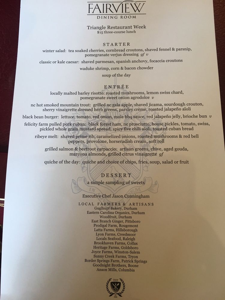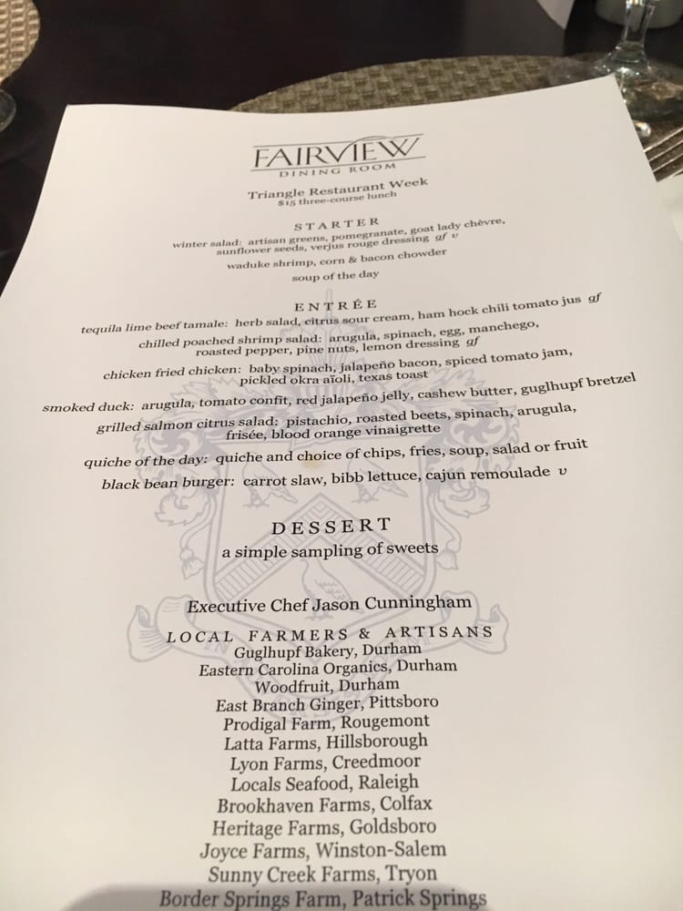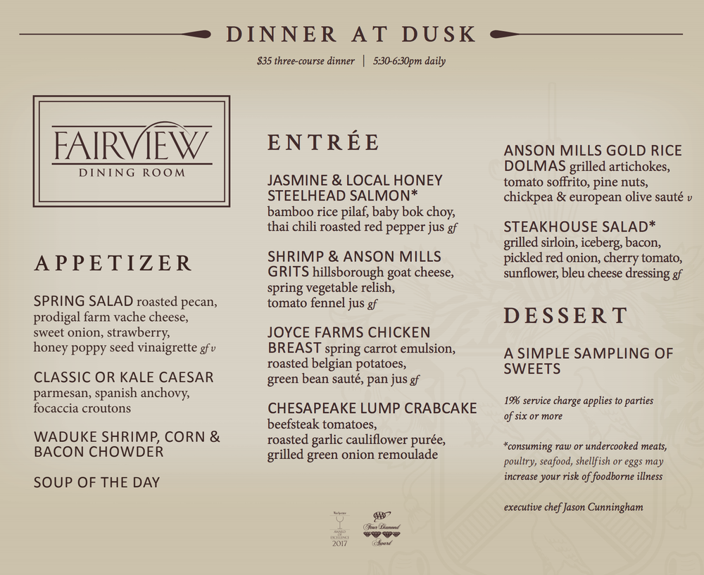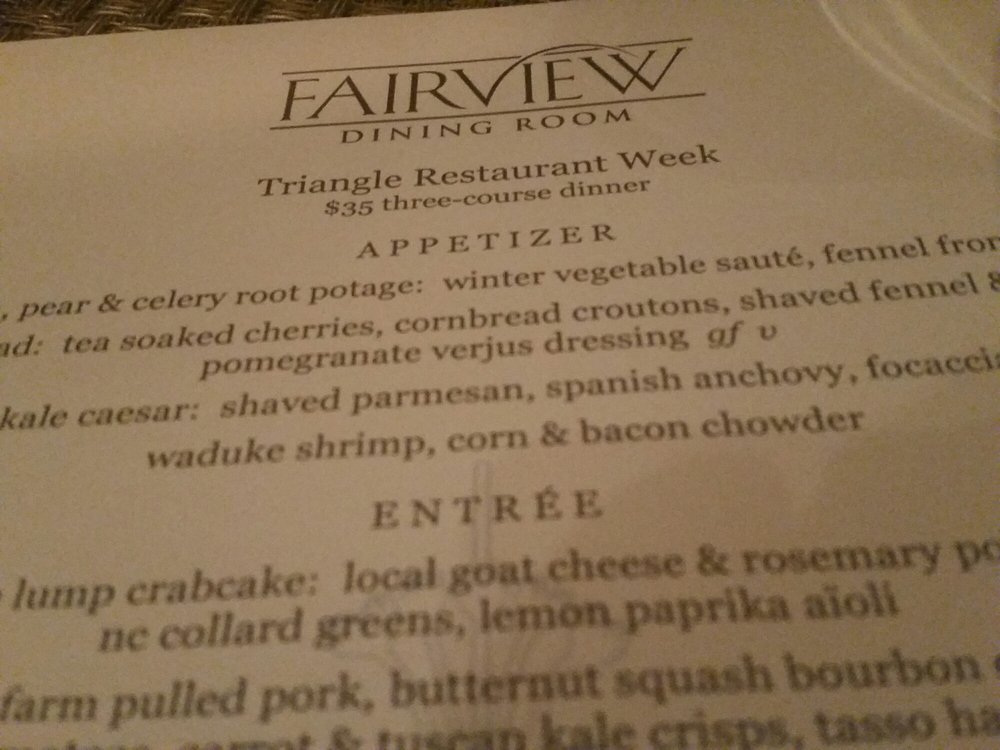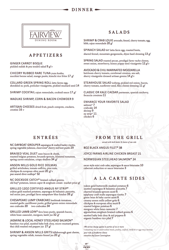 Fairview Dining Room Menu