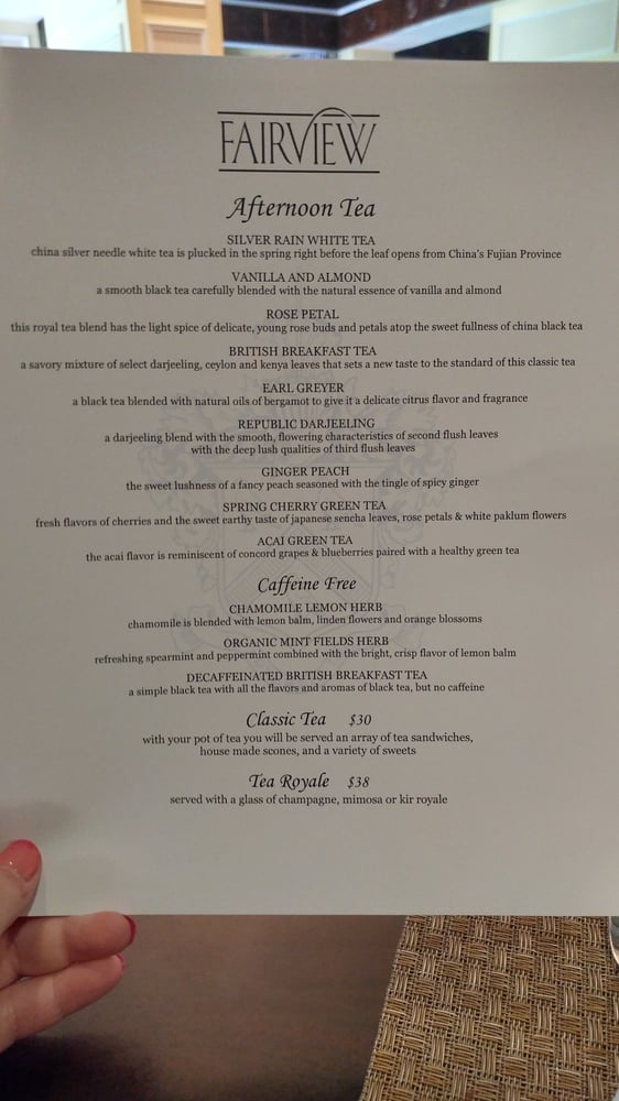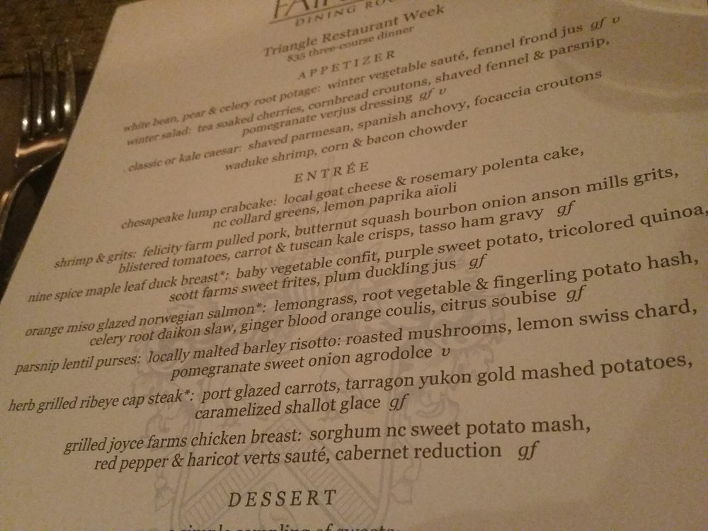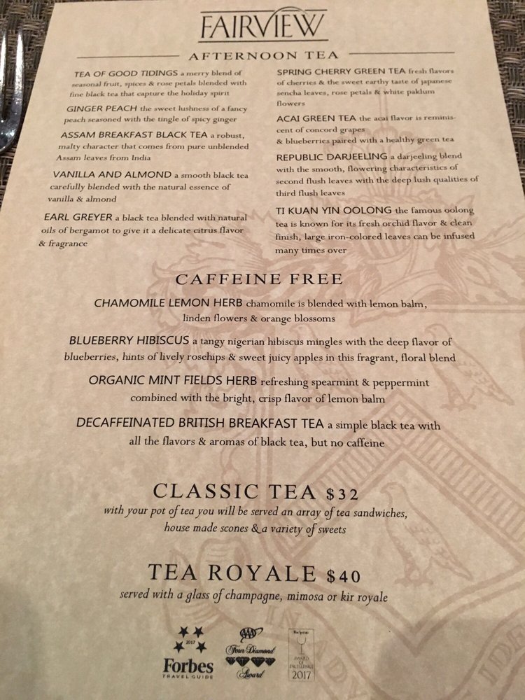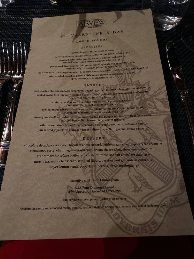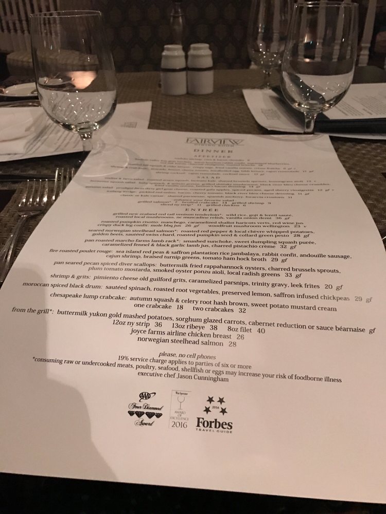 Fairview Dining Room Menu